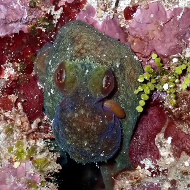 If you love macro diving, you’ll love this because you have all the time in the world to let your eyes adjust and discover the interconnected nature of corals, gobies, blennies, crabs, shrimps, pipehorses and more. See the slideshow below for some of our cool findings on one of the dives. Larger life will also pass you by including Eagle Rays, octopus and schools of fish – the butterfly fish seem particularly inquisitive!